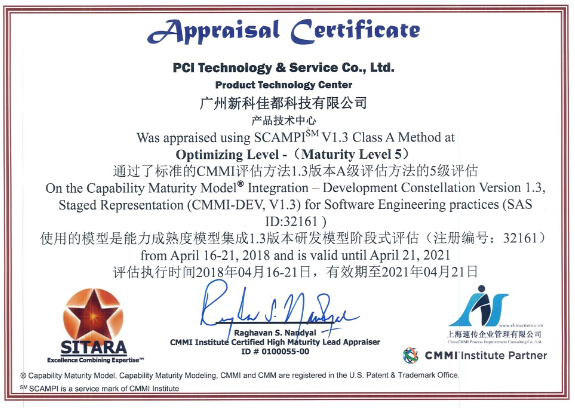 4月21日,zoty中欧科技旗下全资子公司新科佳都正式通过CMMI 5级评估认证,该评估是国际上评价软件开发能力成熟度难度最大、级别最高的认证,标志着公司的软件技术研发能力与管理水平等方面已经达到国际最高标准。